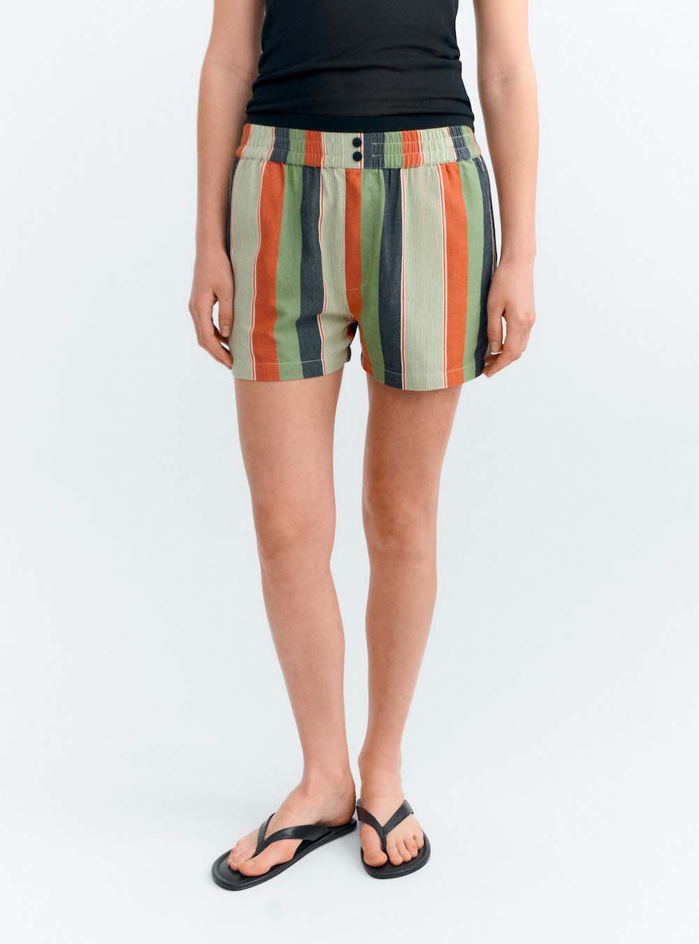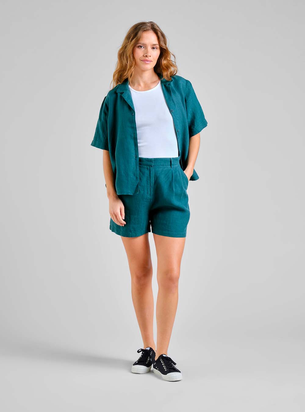 Le short Geraldine est un short fluide à la coupe décontractée, Il est doté d'une taille élastiquée confortable qui lui donne une allure décontractée, parfaite pour un look de détente ou une tenue estivale légère.